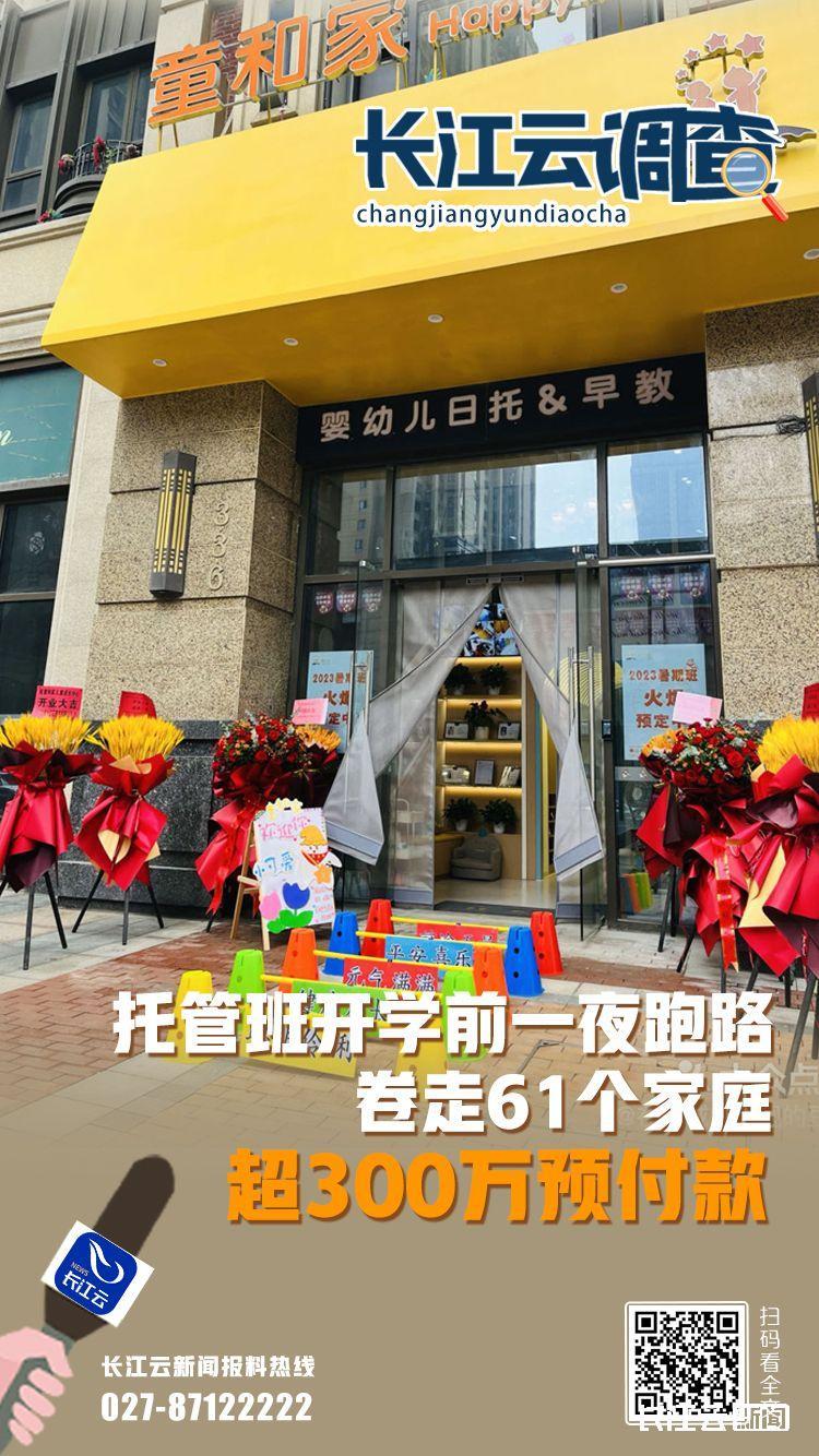 9月4日,武汉数名家长向长江云新闻反映,他们为孩子报读的武汉童和家托育机构于开学前一天(8月31日)突然发布闭园消息,一夜之间,机构老板卷走超300万元学费跑路,61家孩子至今停学在家。