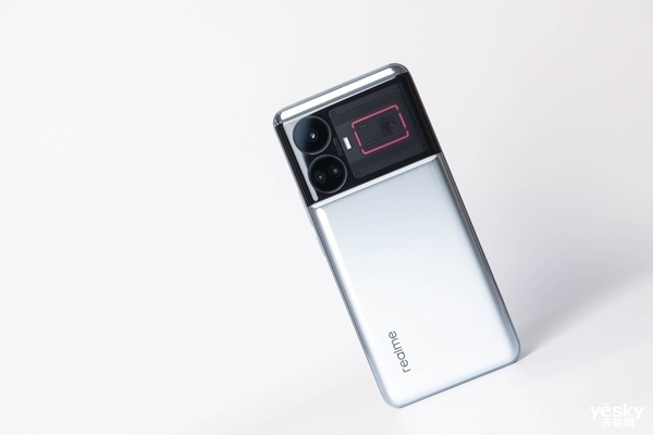 在外观设计上,真我GT5背面摄像头区域采用了业界首创无边界一体DECO设计,整体采用一块完整玻璃打造,在镜头部分,左侧是双环组成的镜头模组,右侧透明区域可以看到SUPERVOOC、觉醒光环的4条灯带、主板定位螺丝等排布,模块的右侧的位置专门定制了骁龙8Gen2处理器的铭牌。