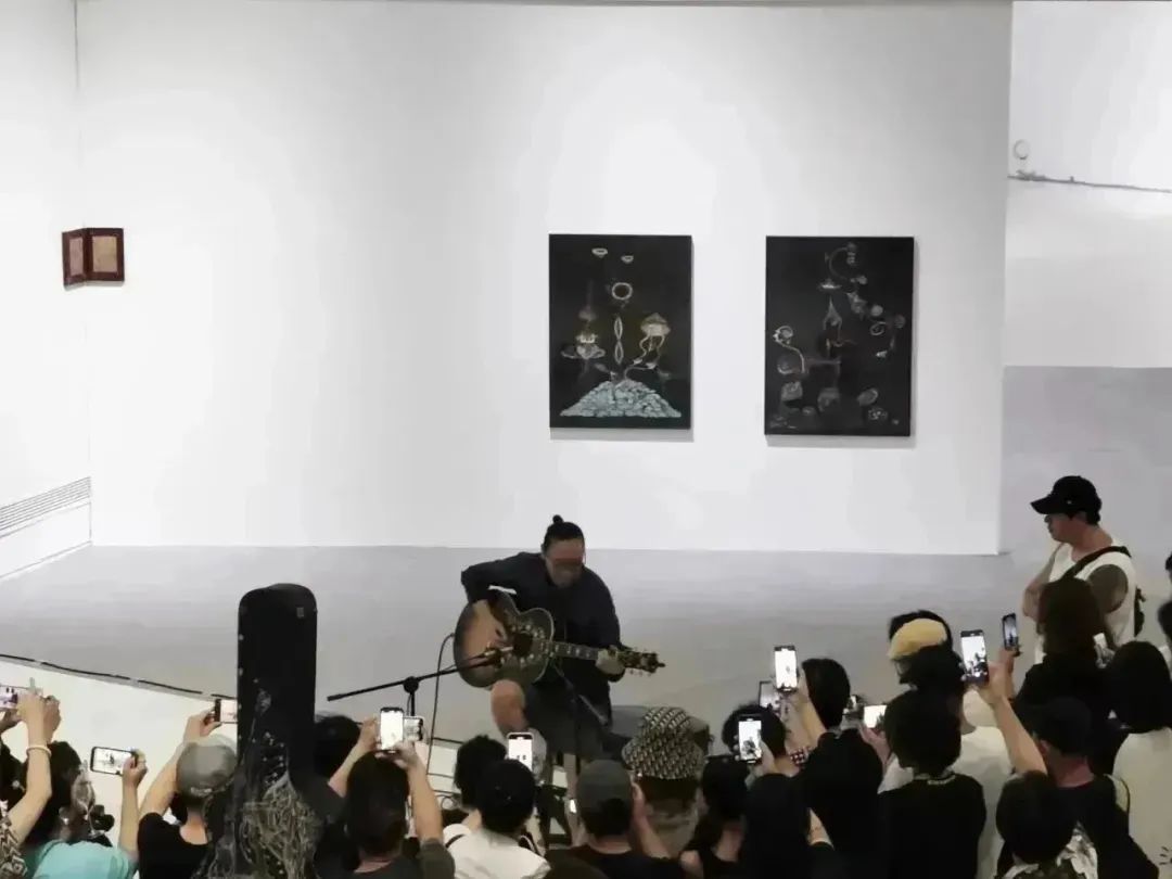 当然这个过程得感谢天地之脉,天地这个气,给我们带来的这个媒介。让我在这里找到了无数前因后果,一些能量的洞察点。从开始学到了一些西方的演奏方式,基本到30岁那年,全部被我推翻了,很快转化自己的语言。在做自己的语言的同时,开始用绘画辅助自己的这个兴致,让这个兴致一直保留在一个从被动到主动的时间里边。这就是简简单单地叙述一下我成长的过程。