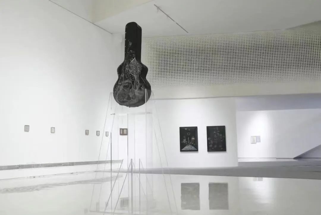 A:这次比较幸运,遇到了非常好的悦美术馆的成馆长和他的团队,在这个展厅完全能够体验到我的这个虚拟的小宇宙结构的那么一个呈现。呈现出来的气氛我还是很兴奋的,因为我喜欢安静,在这么一个安静的环境里面,所有的团队成员他们都很尊重我一个音乐人的灵动的结构的这种每个点的走向、结构设计,还有用这个琴盒做到这个象征性的天线,我还是很开心的。这是我从被动调到主动的第一由来。没有这个天线,我是找不到好多维度信息的,他们给做到了。