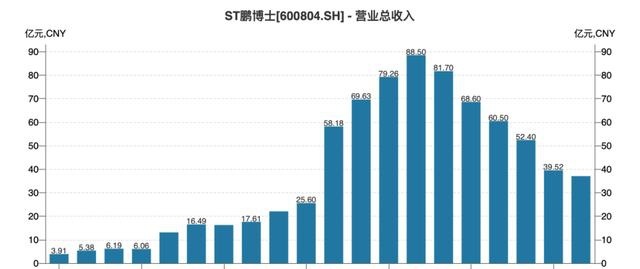 在时代的风口下,鹏博士营收2013年开始腾飞,并在2016年达到88.5亿元。