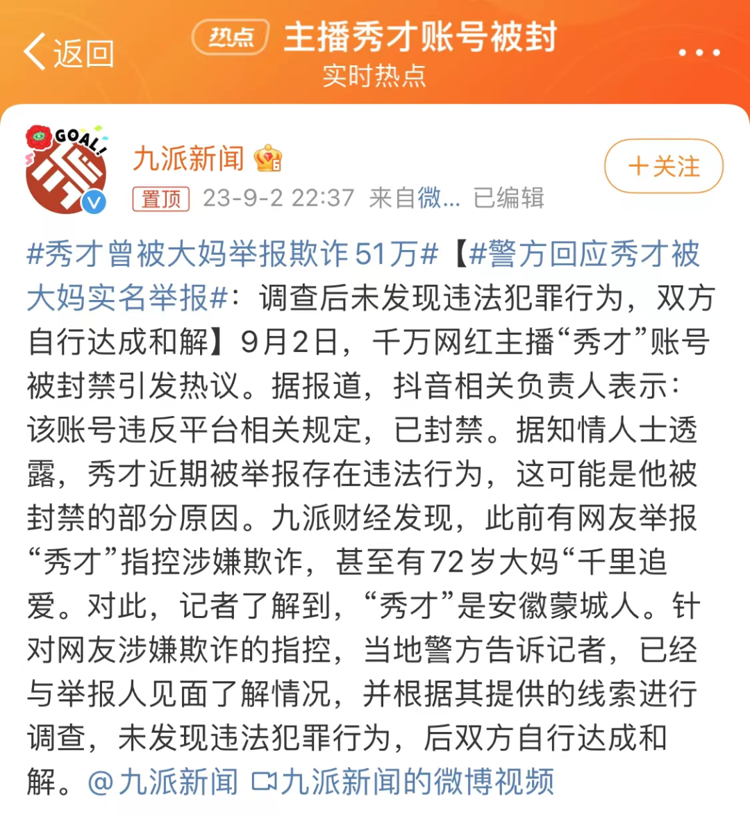 秀才的账号被封禁了。