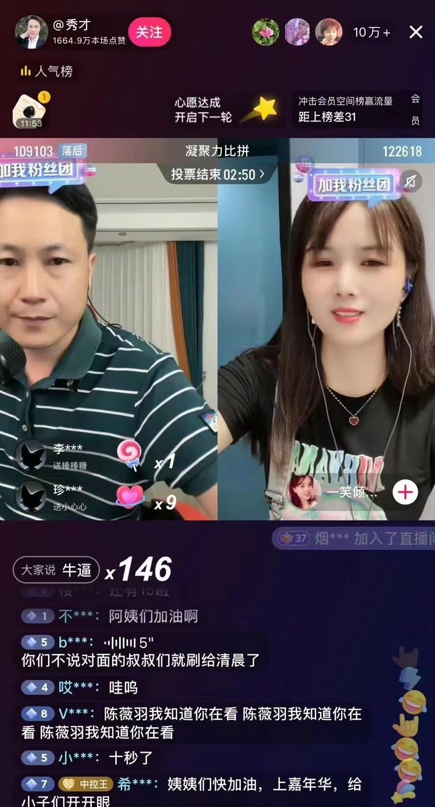 谁能赢下这场PK,取决于谁的粉丝刷礼物更多更贵。