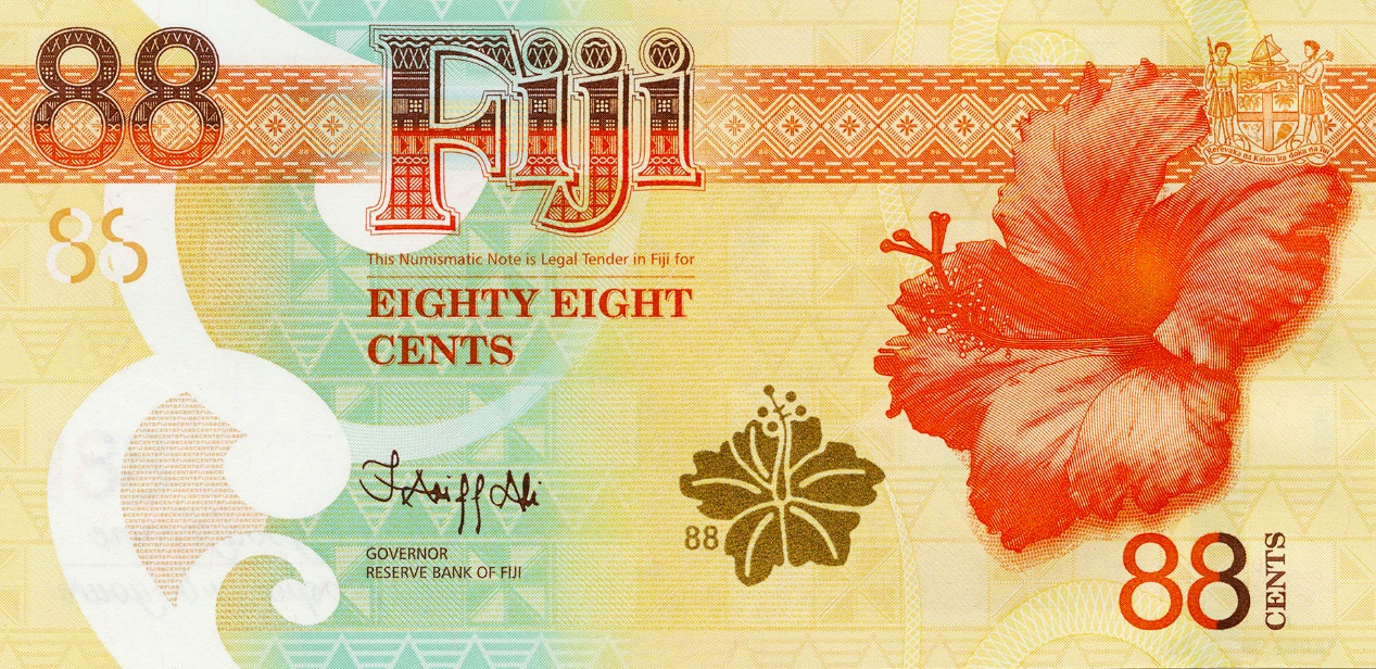 斐济吉祥纪念钞是斐济储蓄银行于2022年8月8日重磅发行的“世界首张以财神为主题的纪念钞”,“世界首张面额88的货币”,其为斐济的法定货币,具有可兑换的货币属性。该纪念钞由中外知名设计大师联袂操刀,采用了双正面设计风格,一面呈现财神,寓意繁荣与幸福;另一面展示朱槿花,象征爱与兴旺,两面相辅相成,一繁一简,独具韵味。