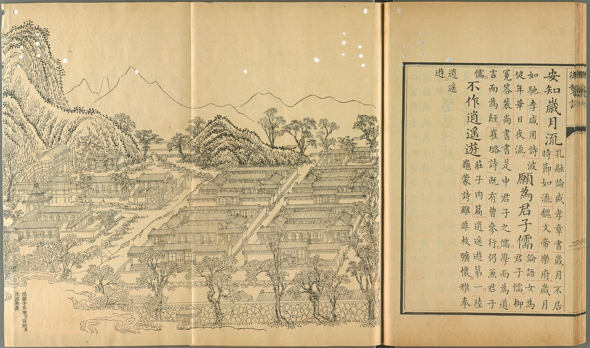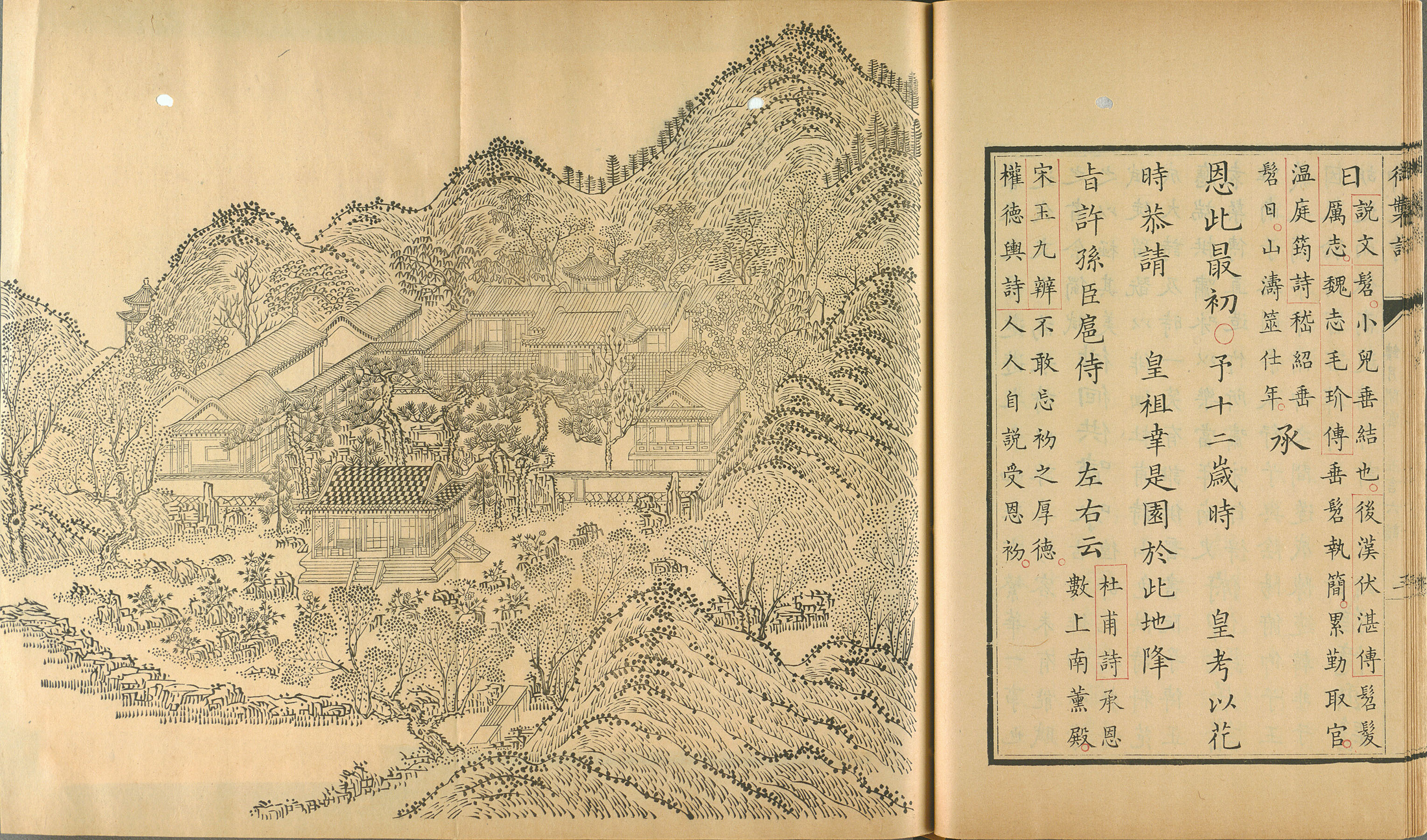 《御制避暑山庄诗》(万壑松风)清康熙五十一年武英殿刊朱墨套印本 台北故宫博物院藏