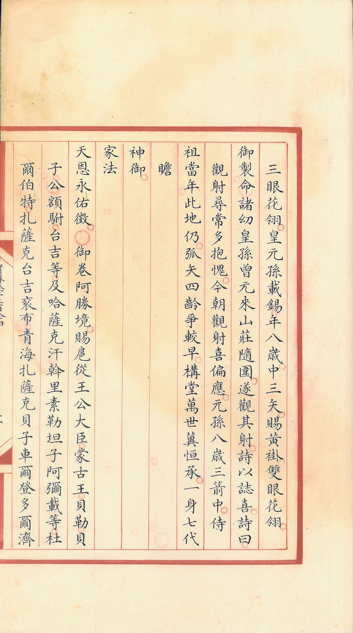 乾隆(1711-1799)六岁就学,十二岁时在圆明园牡丹台首遇其皇祖康熙帝(1654-1722),就能够流利背出周敦颐(1017-1073)的《爱莲说》全文,因深得帝心而被接入宫中用心栽培,成为日后皇位继承人。乾隆皇帝文武技艺样样精通,一生诗作多达四万余首,可谓学养深厚。也让人不禁好奇,生长于深宫或贵族府院中的满族宗室子弟,接受过什么样的教育呢?