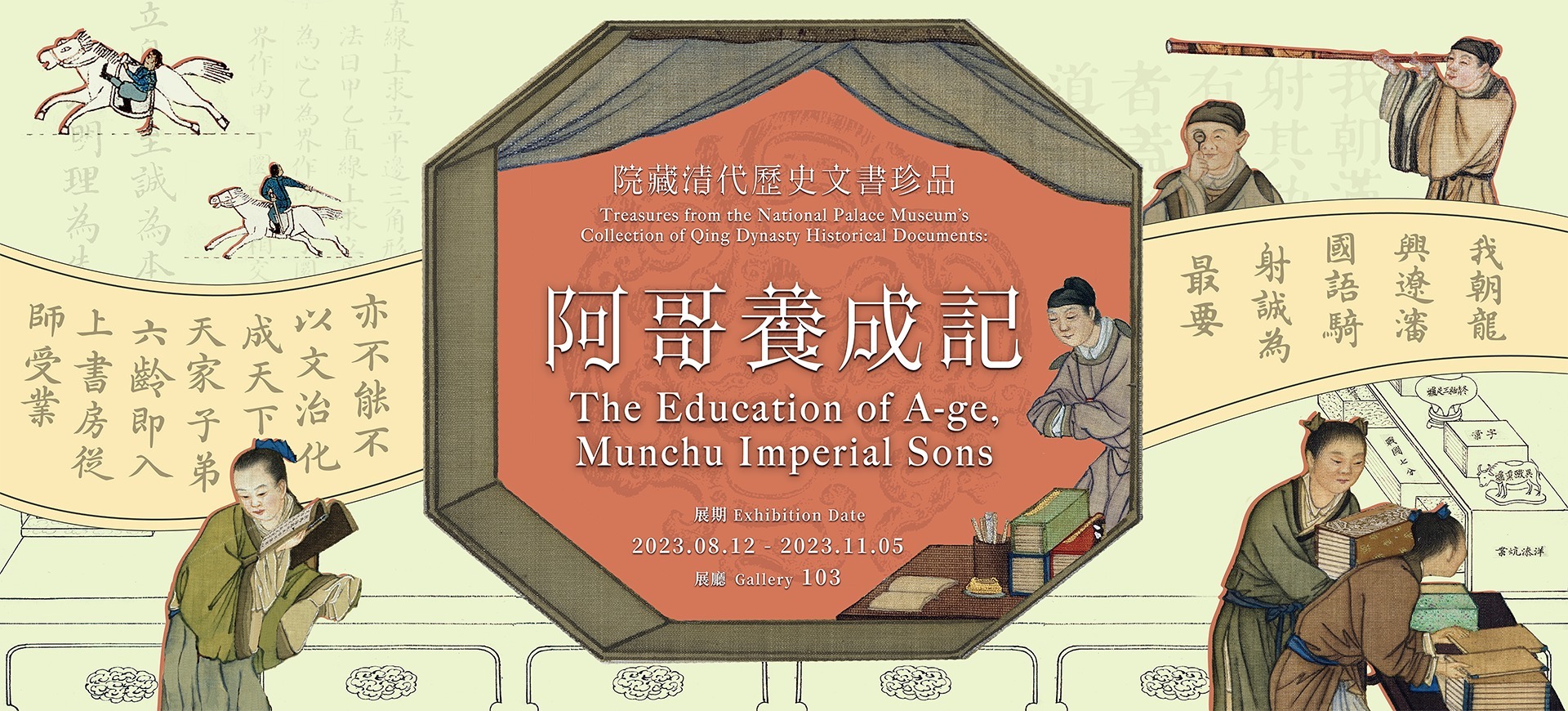阿哥们的功课表强调文武合一,并杂糅中、西科学,与中国历朝侧重文科学习不同,却似乎可与当今学龄教育的多元学习领域相互比照。虽然阿哥们不用科考,也没有现今学生升学竞争的压力。但是依照文献记载,阿哥书房全年无论寒暑,仅歇课五天,学业不可谓不沉重。展览试图揭开满洲皇子教育的神秘面纱,共看学子辛勤学习的异同,为当下的教育提供新的认知与可能。