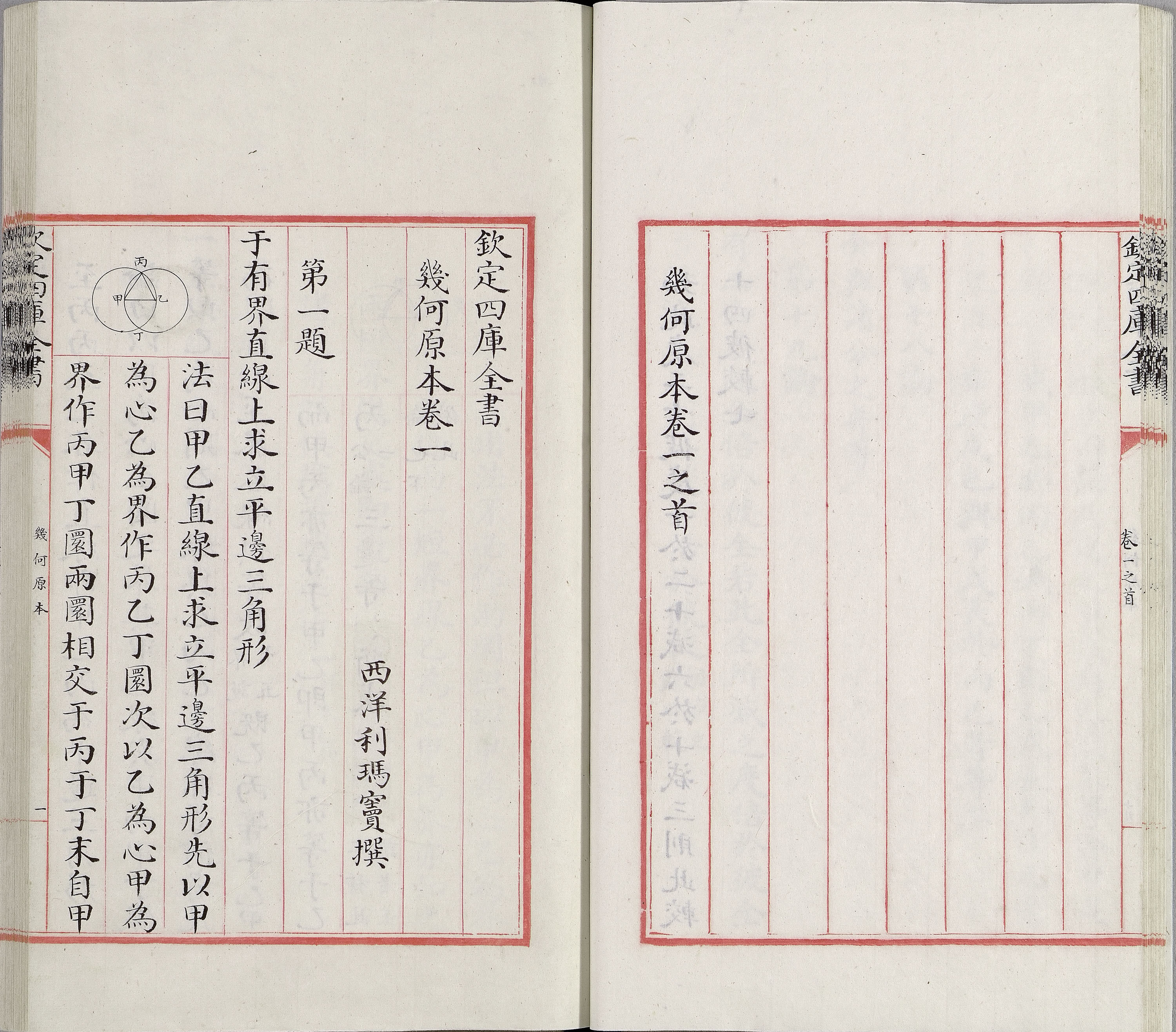 《几何原本》 六卷(西洋)欧几里得撰,清乾隆间写文渊阁四库全书本 台北故宫博物院藏