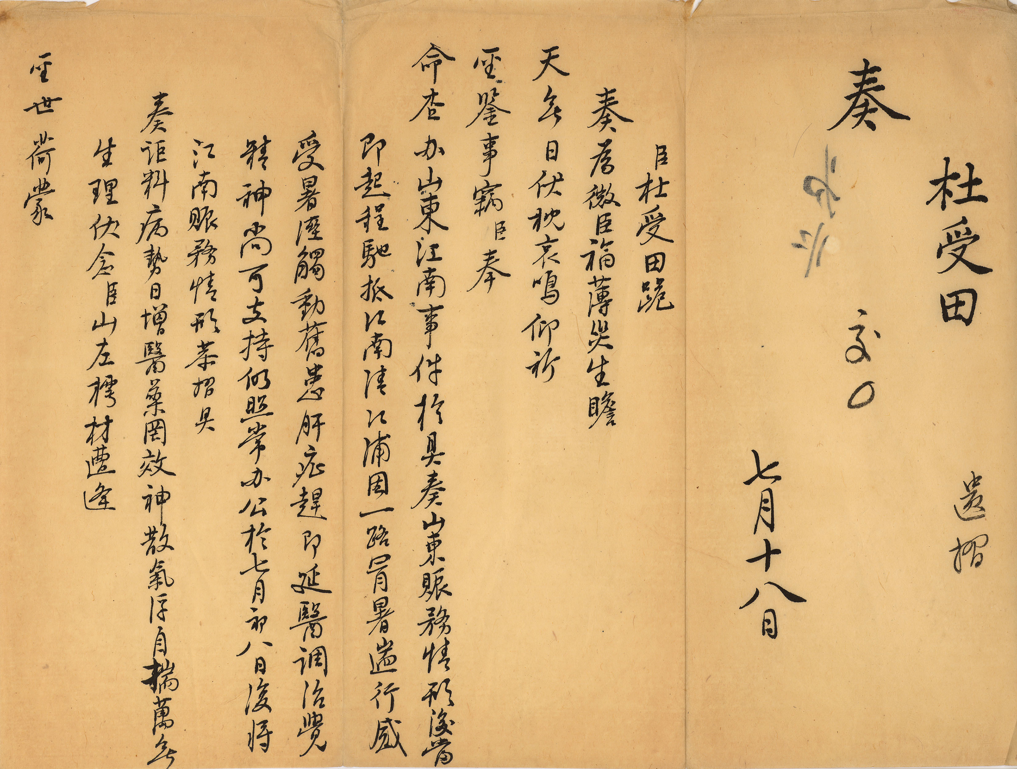 《奏报臣病重瞻天无日(遗摺)》清 杜受田奏 台北故宫博物院藏