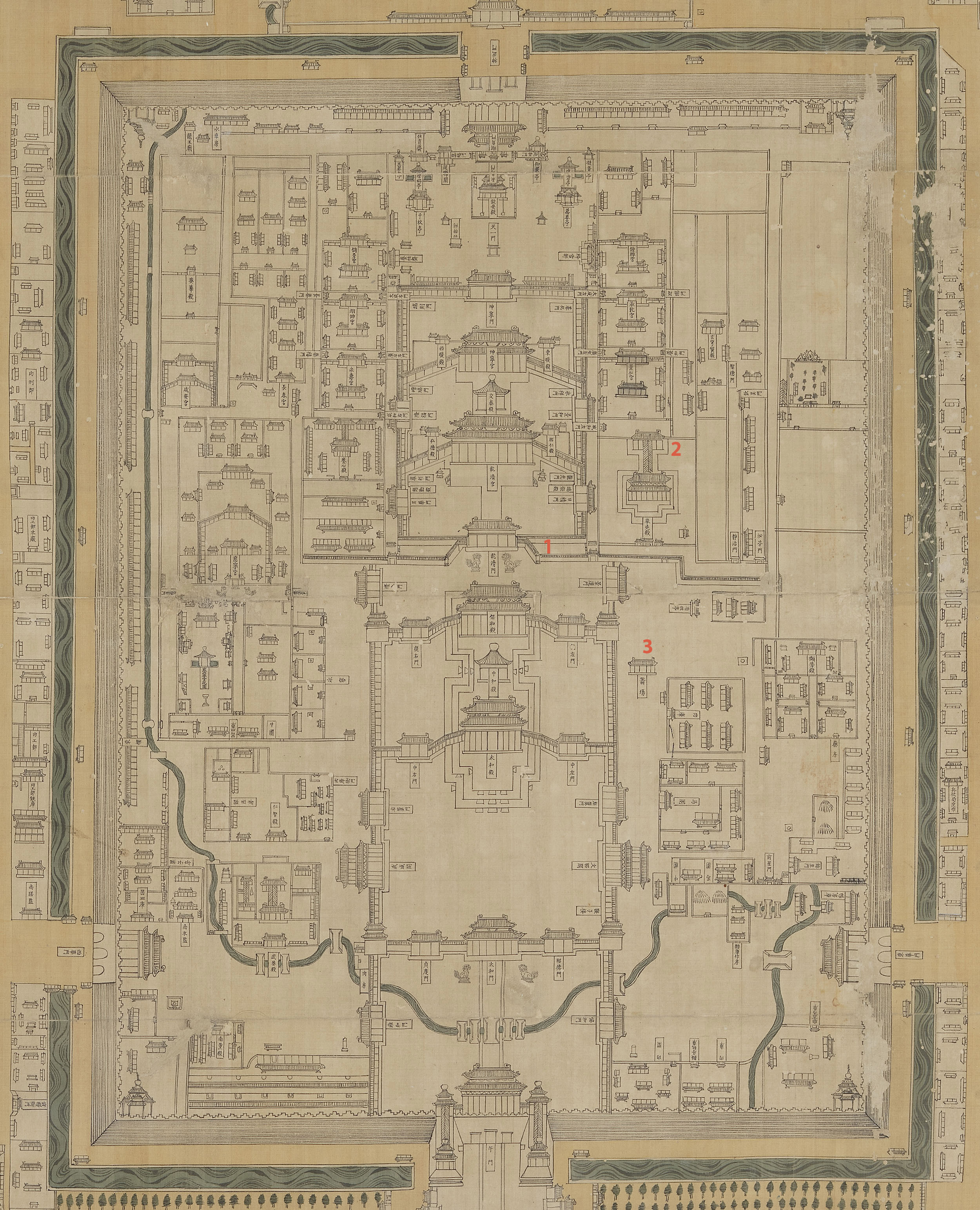 《皇城宫殿衙署图》卷轴(局部) 清代彩绘绢本 台北故宫博物院藏