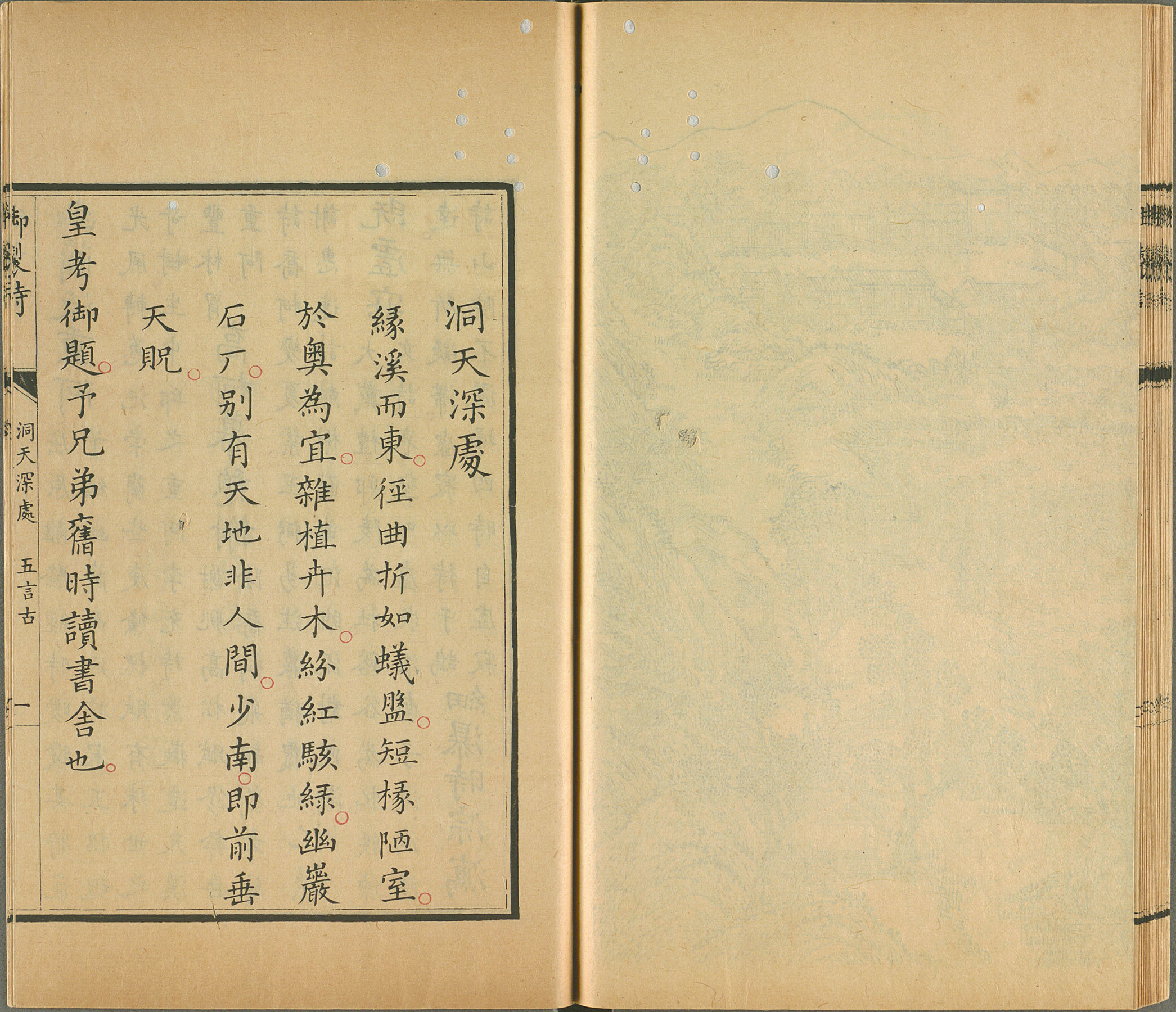 《御制圆明园四十景诗》(洞天深处)第二卷 第二册 清乾隆十年武英殿刊 朱墨套印本,台北故宫博物院藏