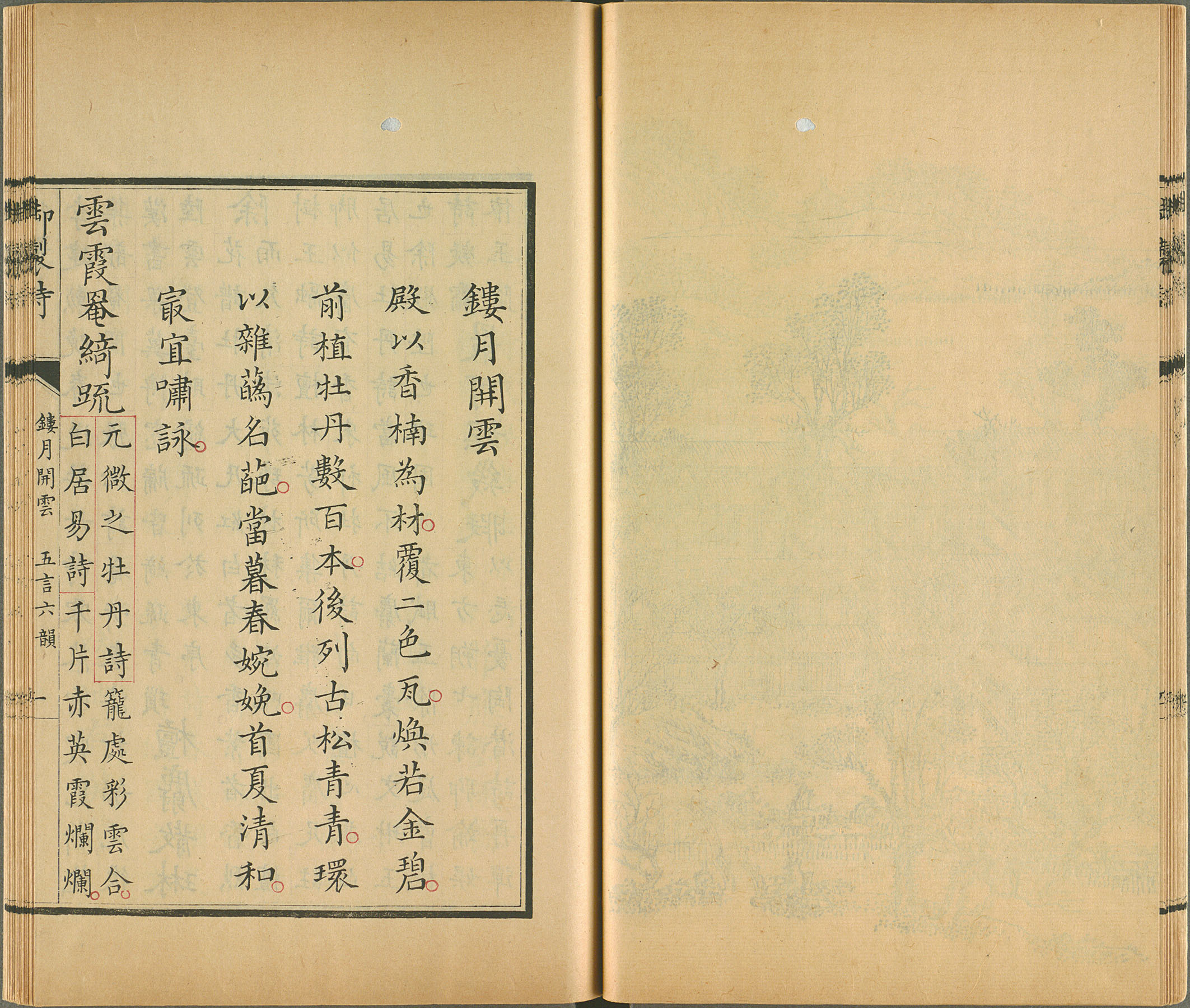 《御制圆明园四十景诗》(镂月开云)第一卷 第一册 清乾隆十年武英殿刊朱墨套印本,台北故宫博物院藏