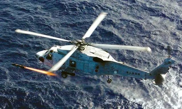 SH-60J反潜直升机可在5级海况下正常起降,巡航速度为250千米/小时,空中续航时间2小时18分,作战半径可达160千米。SH-60J的反潜武器同样为2枚反潜鱼雷。航空反潜的主要武器是MK46型鱼雷和MK54型航空深水炸弹。
