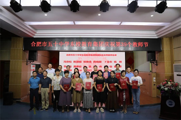 一支粉笔,两袖微尘,三尺讲台,四季耕耘,正是全体教职员工不计回报的付出,才让五十中学东校收获了社会各界的赞誉。张曙宣读集团优秀教师表彰文件和名单,张斌等校级领导为获奖教师颁发奖状并表示祝贺。