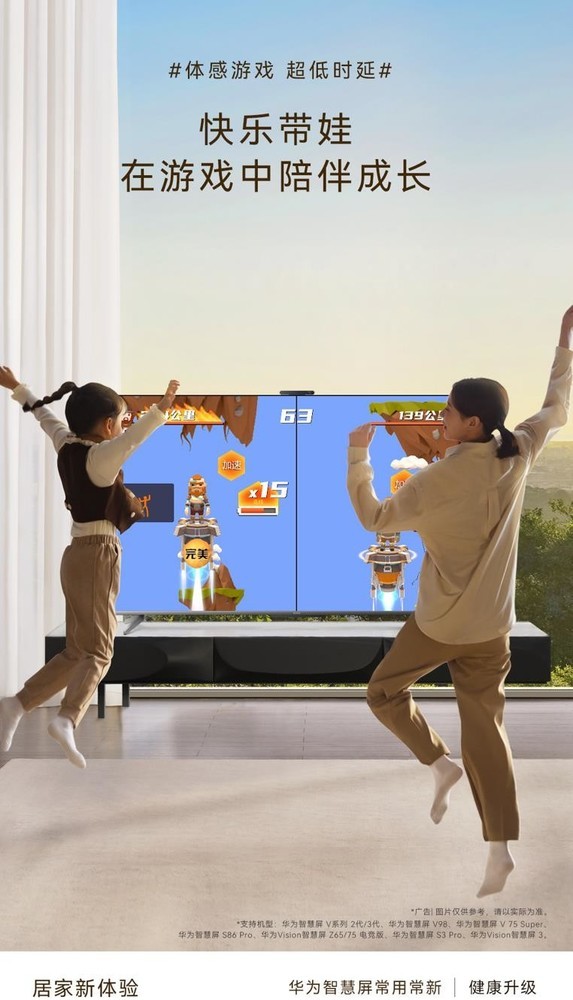此外,健康升级也使得华为智慧屏独有的AI摄像头的追焦准确性和稳定性获得大幅提升,带来更丝滑流畅的游戏体验。让家长和孩子可以通过华为智慧屏一起玩乐,增进亲子关系,度过愉快的亲子时光。