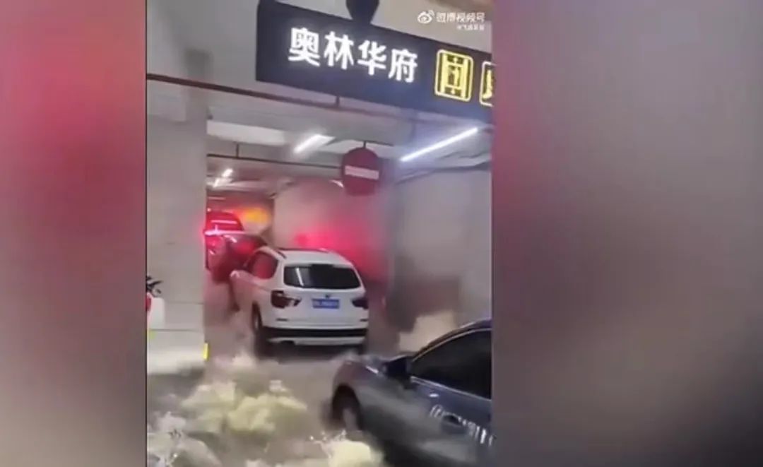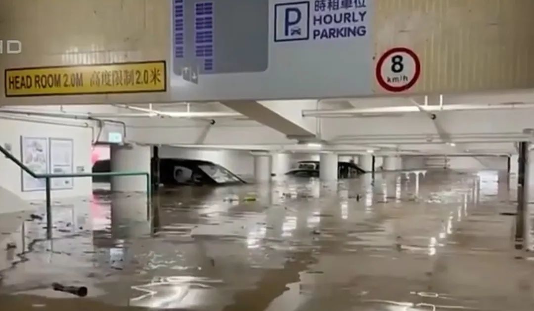 就连限高两米的地下车库,都几乎被水淹没至顶。