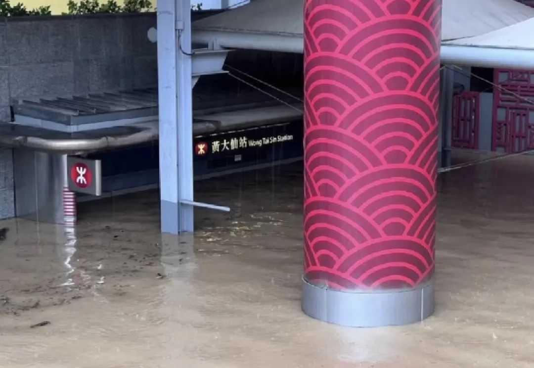 黄大仙是本次水浸最严重的区域之一,有网友手机录得港铁黄大仙站内被水淹没。