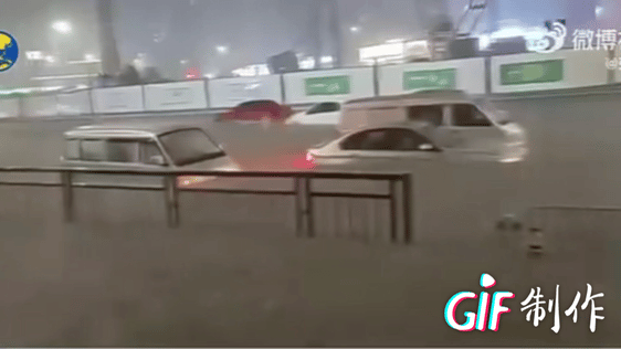 排不走的积水形成骇人的喷泉和急流,从地下缝隙,井盖处喷涌而出。