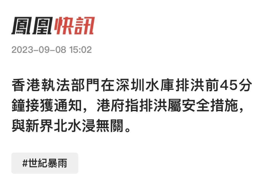 香港淹没至此,比邻的深圳情况也十分严峻。深圳水库在8号零时零分排洪,但已知没有加重香港新界北部地区的水淹情况。