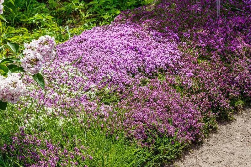 百里香是一种草本花卉,在阳光充足的位置养护最好,它喜欢疏松排水好的沙质土,适合养成院子里迷人的景观植物,有些植株低矮的品种甚至可以作为地被植物,比如匍匐百里香。