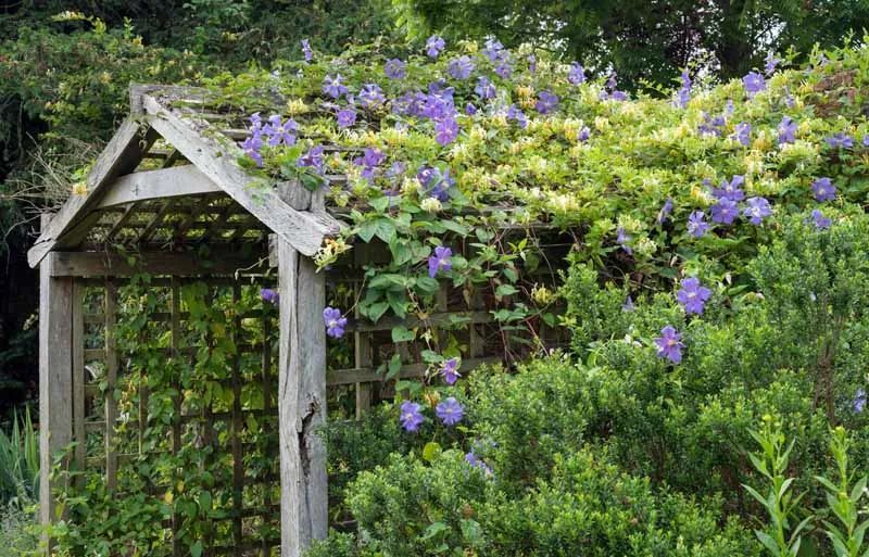 铁线莲是一种非常容易生长的爬藤植物,花朵迷人,在阳光充足的环境下,保证土壤有较多的有机质和良好的排水性,铁线莲就维持良好的生长状态。