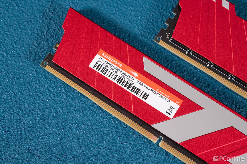 内存条背面还贴有铭牌贴纸,这里比包装盒上的信息多了不少,可以看到内存的具体型号,我们拿到的是两根16GB的内存,组成32GB双通道,频率为6400MHz,属于DDR5内存产品中的主流水平。