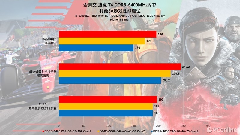 类似的游戏还有《战争机器5》、《孤岛惊魂6》、《F1 22》等。我们都一一进行了详细的测试,开启XMP-6400MHz后的金泰克 速虎T4 DDR5内存确实能够带了一定的性能提升,特别是《战争机器5》、《孤岛惊魂6》,帧数提升都超过了20帧以上,反映在游戏中最直观的体验就是游戏帧数上升了,操作更跟手了。