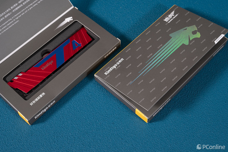 金泰克 速虎T4 DDR5-6400MHz内存采用单条单盒包装设计,外包装以金属灰为主色调,包装盒上,金泰克“虎”的标志配合反光Logo呈现其中,并且在包装中加入了浅白色“Kimtigo”的Logo字样,满满的金泰克字样,上手就能看到,品牌辨识度拉满!