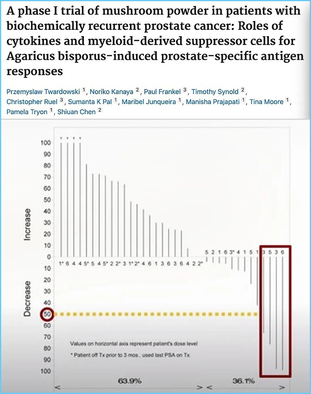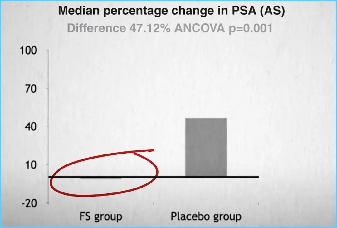 研究发现,在没有手术的前列腺癌人群中,安慰剂组前列腺癌抗原指标上升了40%-50%。而使用此果蔬茶配方的人,前列腺癌抗原指标几乎没有上升。也就是说,这个果蔬茶配方不仅能预防癌症,还能治疗癌症。
