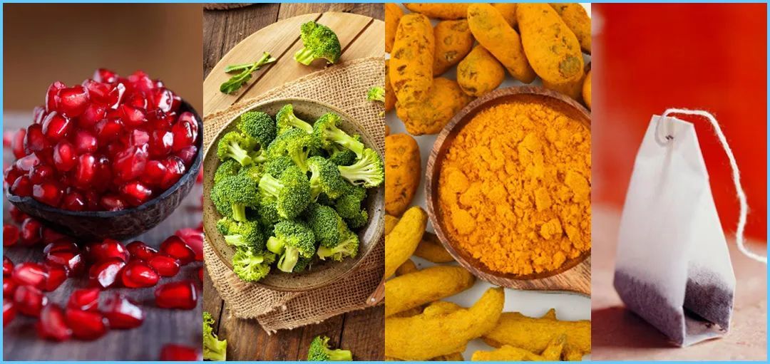 【用法】用茶叶泡水,过滤后取茶汁;将石榴、西蓝花、姜黄粉和茶汁放入破壁机中,打碎即可饮用。