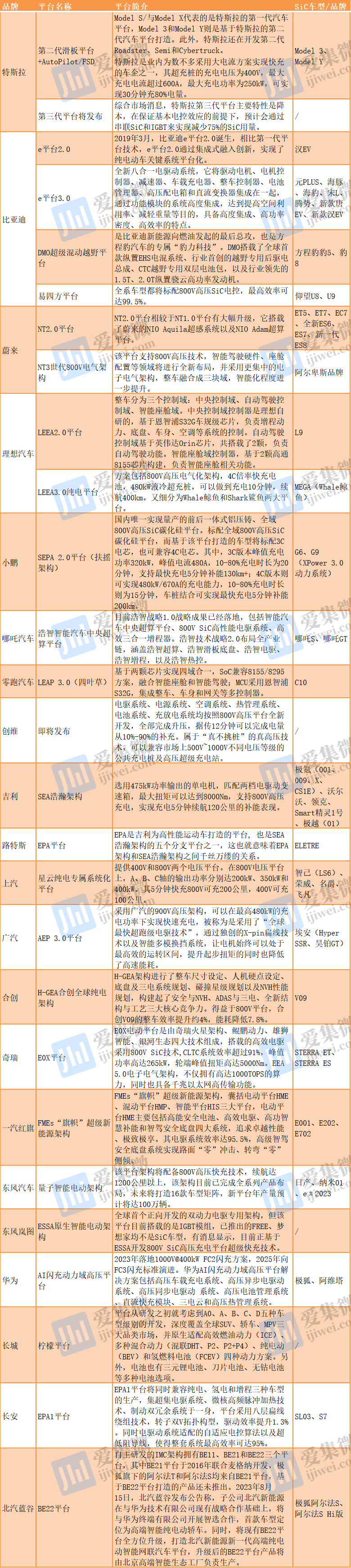 值得注意的是,基于SiC器件所打造的电气架构,往往又具备高压快充性能,因此,目前业内新规划的SiC纯电平台多以800V电气架构为主要开发方向和应用方向。