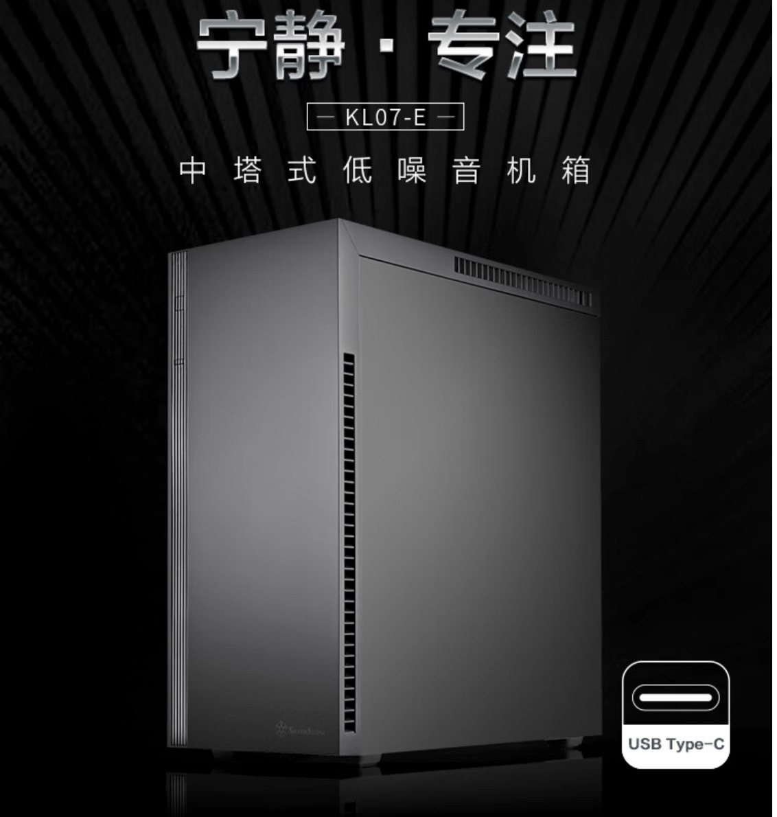 与上一代KL07-B相比,银欣KL07-E机箱板材依然为钢铁材质,整体尺寸同为467mm(深)×510mm(高)×222mm(宽),但净重从7.7kg增加至9.23kg,同样支持Micro-ATX、ATX规格的主板。KL07-E没有沿用KL07-B的波浪静音棉而改用了厚度2mm并且耐氧化、耐高温的沥青吸音棉,降低噪音的同时还能延长使用寿命。在前置I/O面板上,银欣KL07-E升级为速度更快的一个USB 3.1 Gen2 Type-C接口(10Gbps带宽)与两个USB 3.1 Gen1 Type-A接口(5Gbps带宽),保留了音频和麦克风插孔。