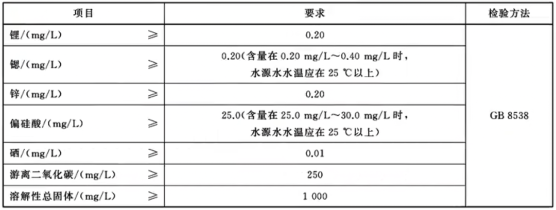 天然矿泉水认准产品标准号:GB8537,我国2018年发布了《食品安全国家标准饮用天然矿泉水》中对矿泉水的定义:从地下深处自然涌出的或经钻井采集的,含有一定量的矿物质、微量元素或其他成分,在一定区城未受污染并采取预防措施避免污染的水;在通常情况下,其化学成分、流量、水温等动态指标在天然周期波动范围内相对稳定。
