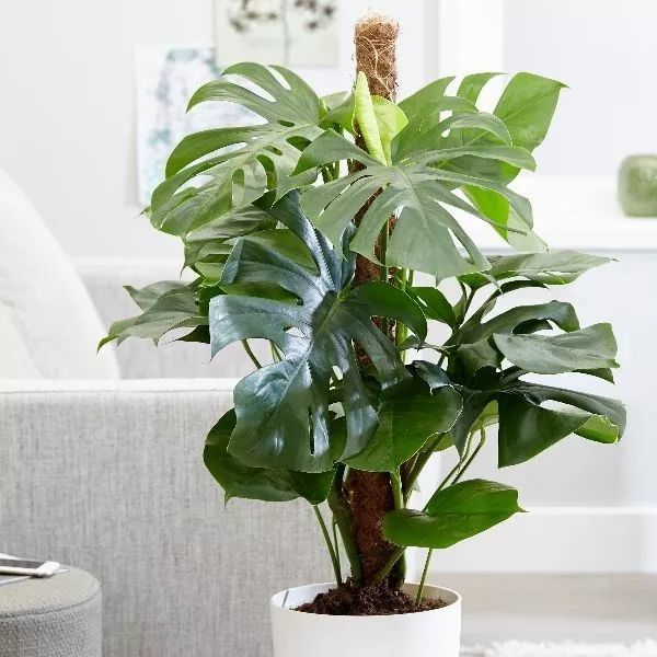 在花市上看到的绿萝柱,有一些是用椰棕皮制作和竹子制作的,有一些则会用毛毡代替椰棕皮,总是就是要给植物提供一些爬藤生长的环境。