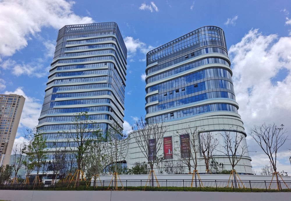 位于浙江杭州市西湖区双浦镇的西湖—淳安山海协作“共富飞地”千岛湖智邦大厦正式开园(2023年8月28日摄)。新华社发