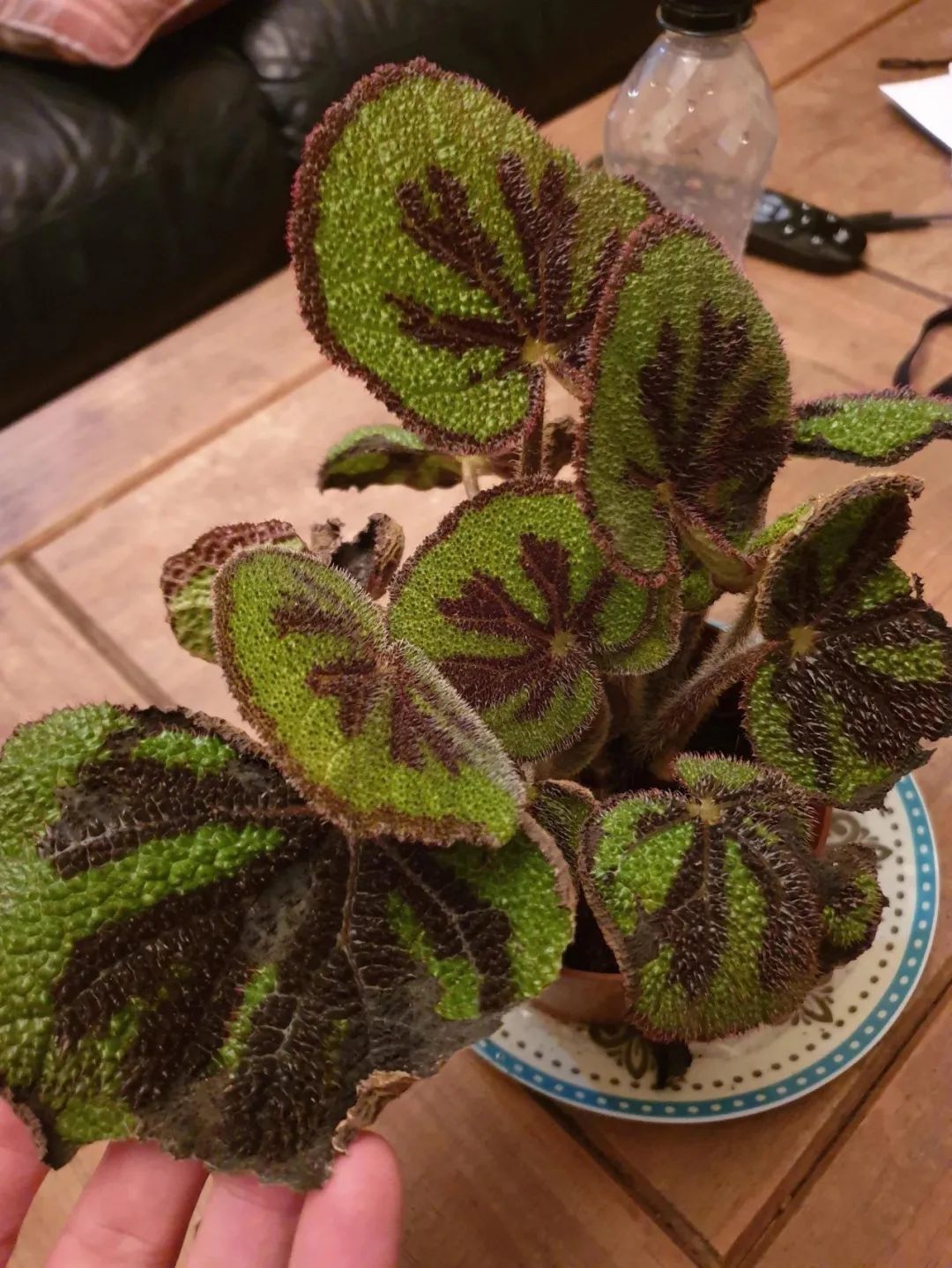 这些铁十字秋海棠是很害怕空气干燥的,在空气湿度长期低于40%以下,它的叶子状态就会变得比较差。