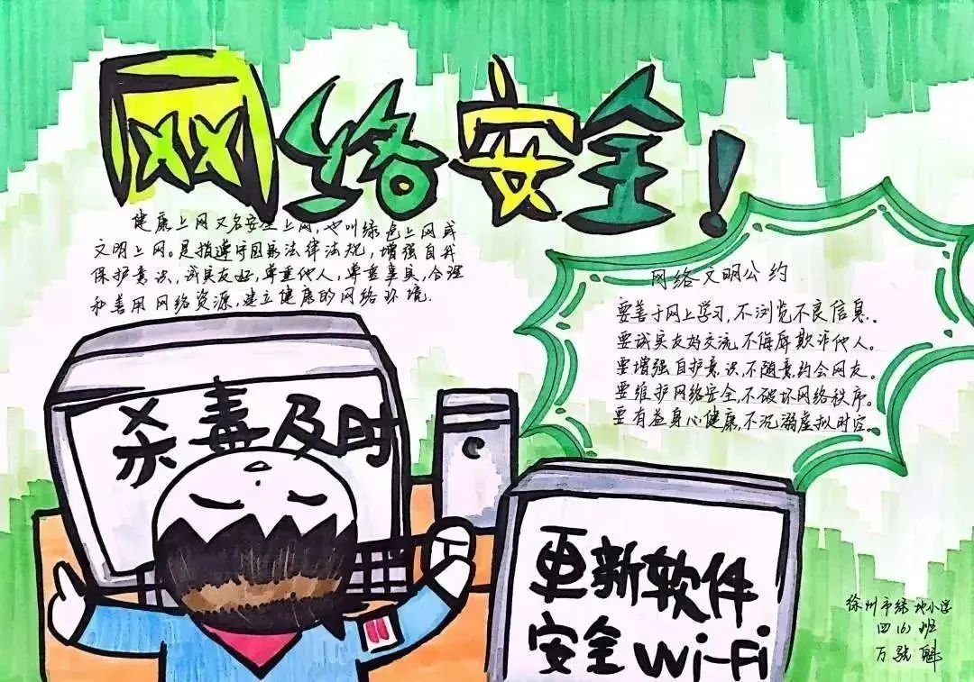 积极发动学生绘制网络安全宣传手抄报,化身小小宣传员,宣传网络安全知识。