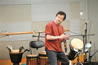 在排练现场看不多久便可知,他是众主演中形体最丰富也最累的一个。他饰演的精灵要在背景一个大铁架般的装置上蹿蹦跳跃,扇起大黑布时他的双手要跟超过10位年轻的精灵群演角力。他后来又一个人把大布甩出水袖的效果,有些身姿舞步又像在跑“圆场”。蹲守排练场二楼的人不由想:这人应该学过戏曲,说不定还跳现代舞。