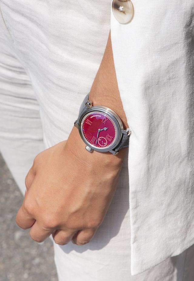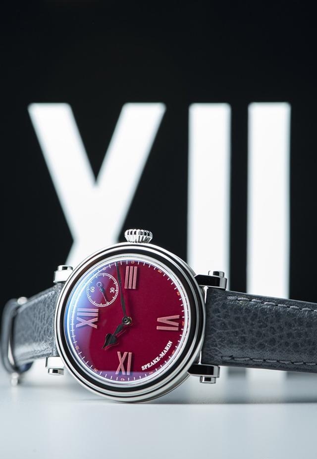 在2023年“钟表与奇迹”上海高级钟表展上,Speake Marin全球首发了ONE & TWO ACADEMIC Rouge腕表。这款腕表采用了非常特殊的红色作为表盘色,188C,这是Pantone色板中Speake Marin 此次选择作为 ACADEMIC Rouge代表色的色号。