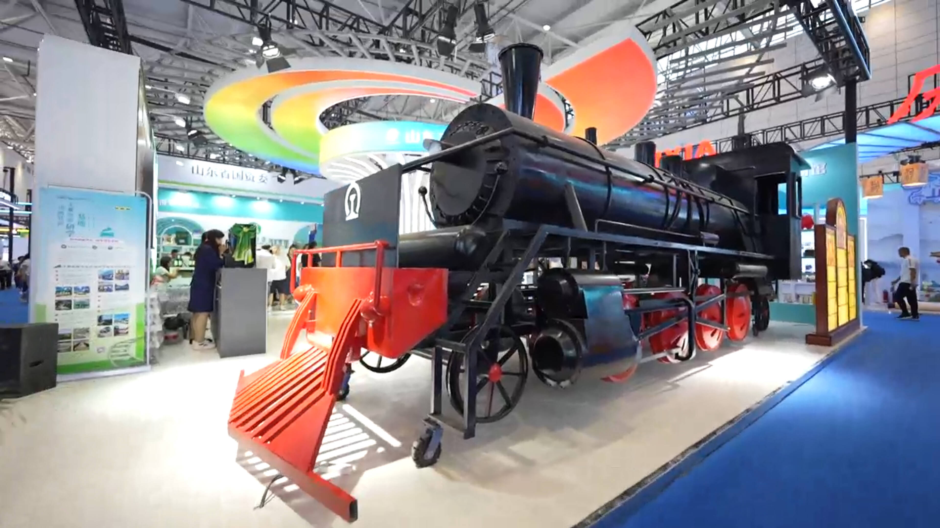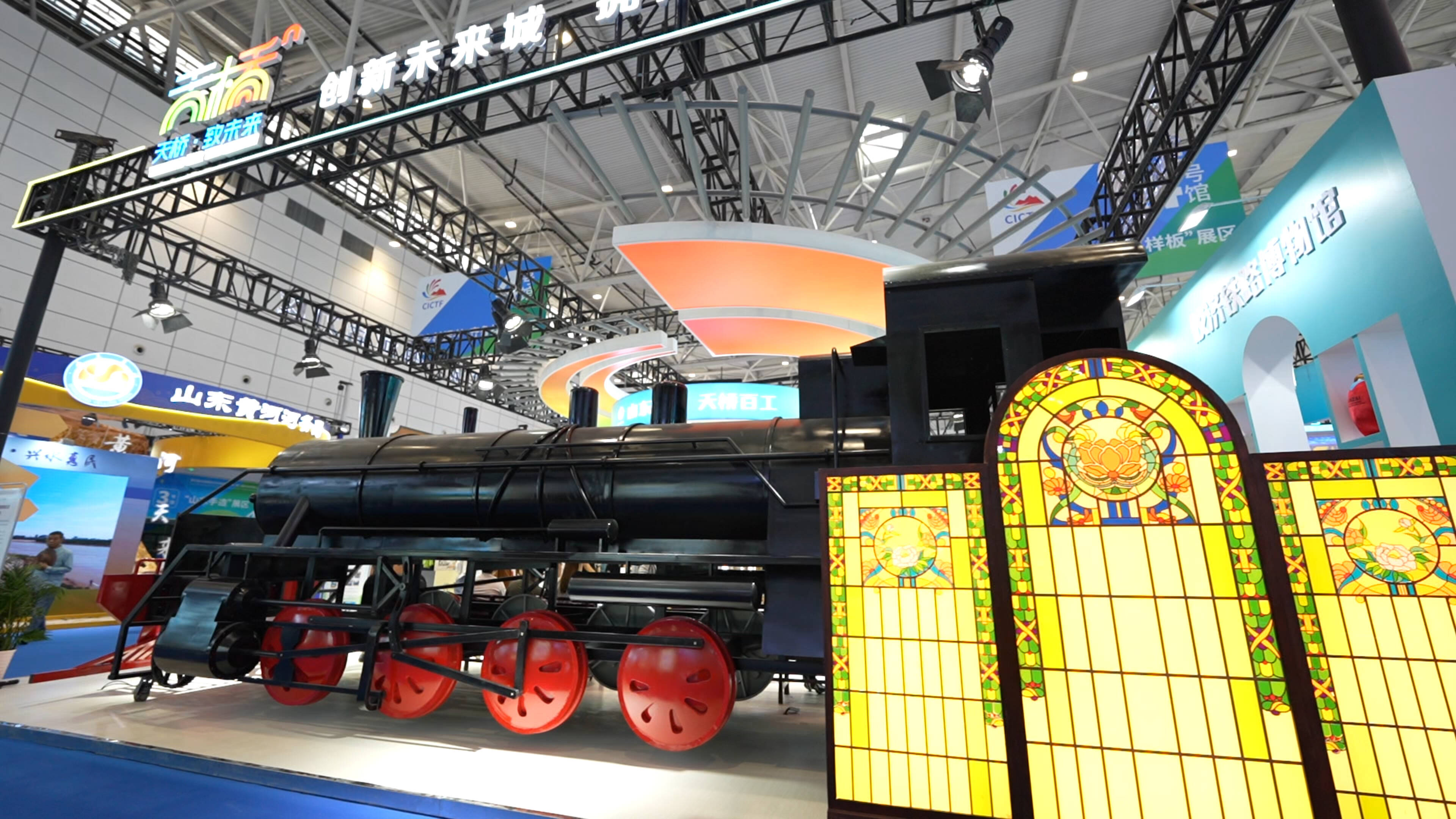 步入天桥展区,首先映入眼帘的就是门口的复古蒸汽火车头。作为天桥区展位的门面担当,颇具年代感设计的火车头,不仅能带入百年前胶济铁路通车的情境、物境、意境,同时也寓意着天桥这列从历史中穿行而来的火车,意气风发踏上新征程,向着新目标,奋楫再出发。