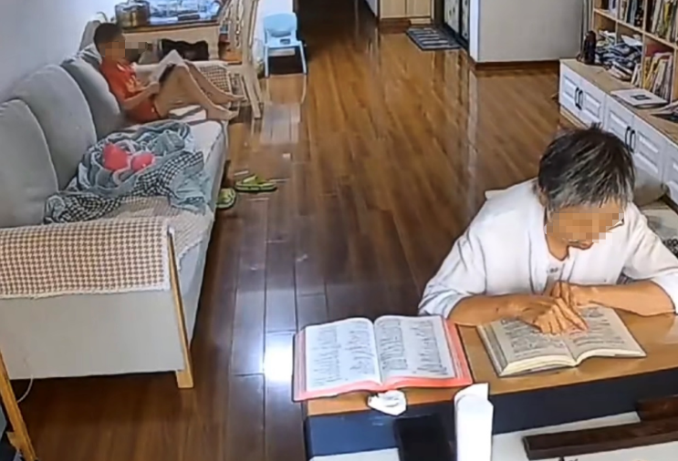 之前网上热传的一段视频中,一位奶奶在书桌前读书,孙子睡醒后,自然而然拿起书窝在沙发上看了起来。