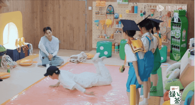 这周三的节目里,有一个“秘密中心”的关卡通关要求是画100只乌龟、用粤语说晚安以及学魔镜跳舞、跳双人篮球舞,一群成年人已经毫无心理芥蒂地在那玩起来了——别人看起来像在集体发疯,他们完全没有心理负担,乐在其中……
