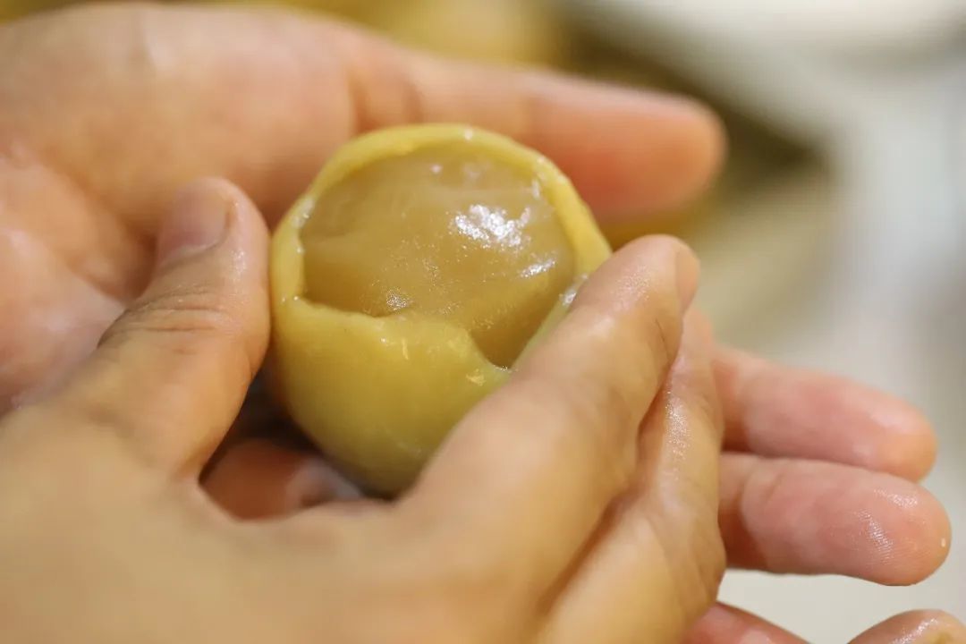 饼皮慢慢往上推,比例为2:8。
