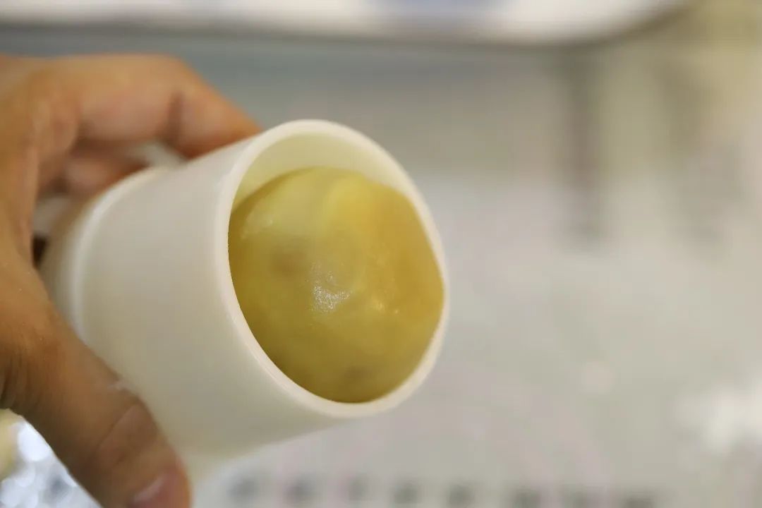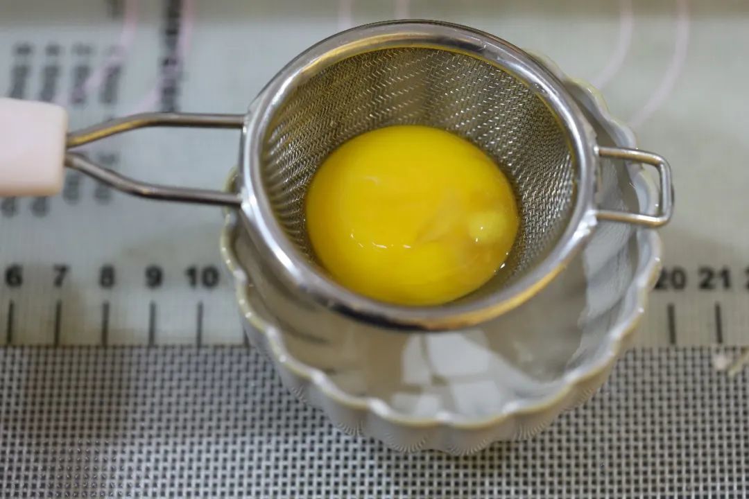 一个蛋黄加一克水拌匀,过筛。