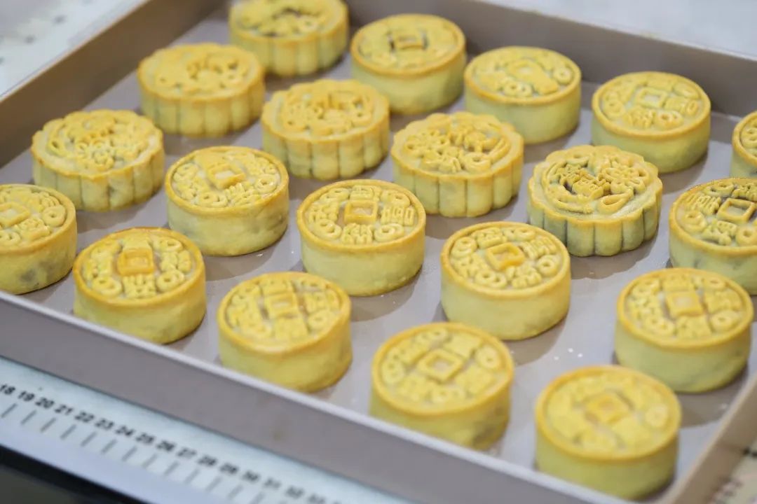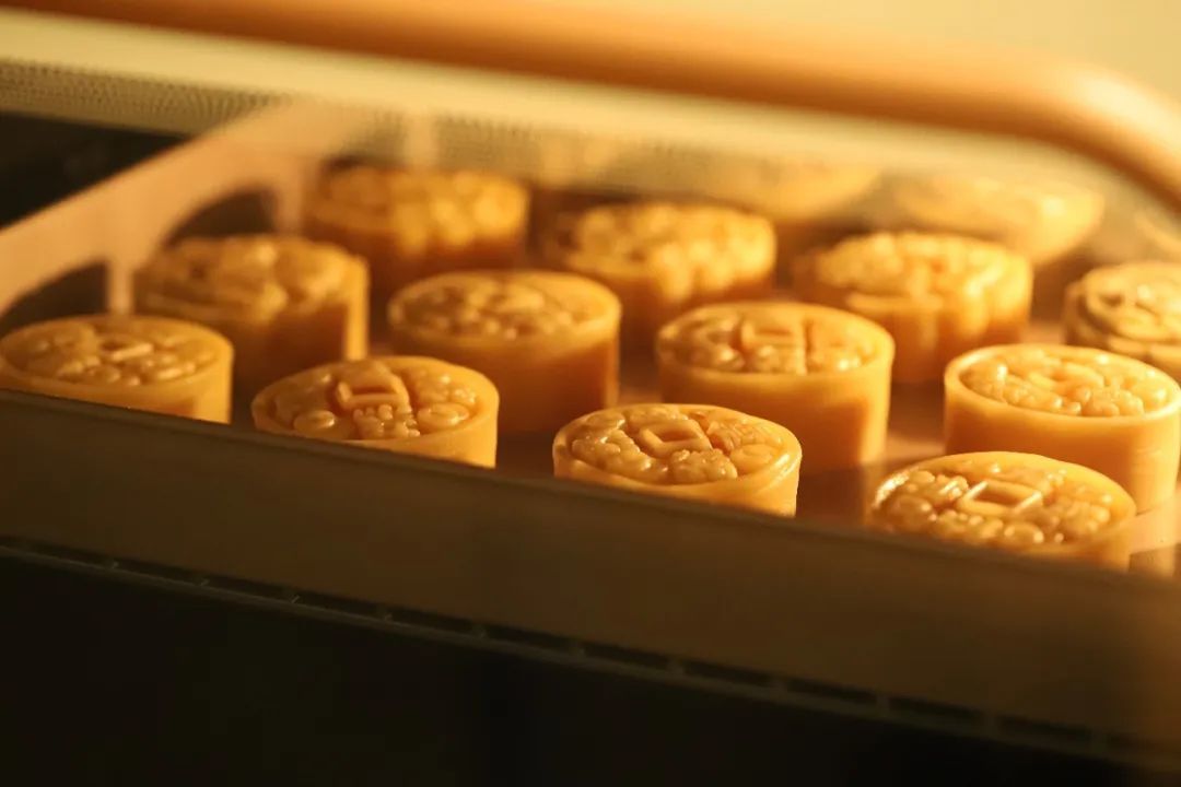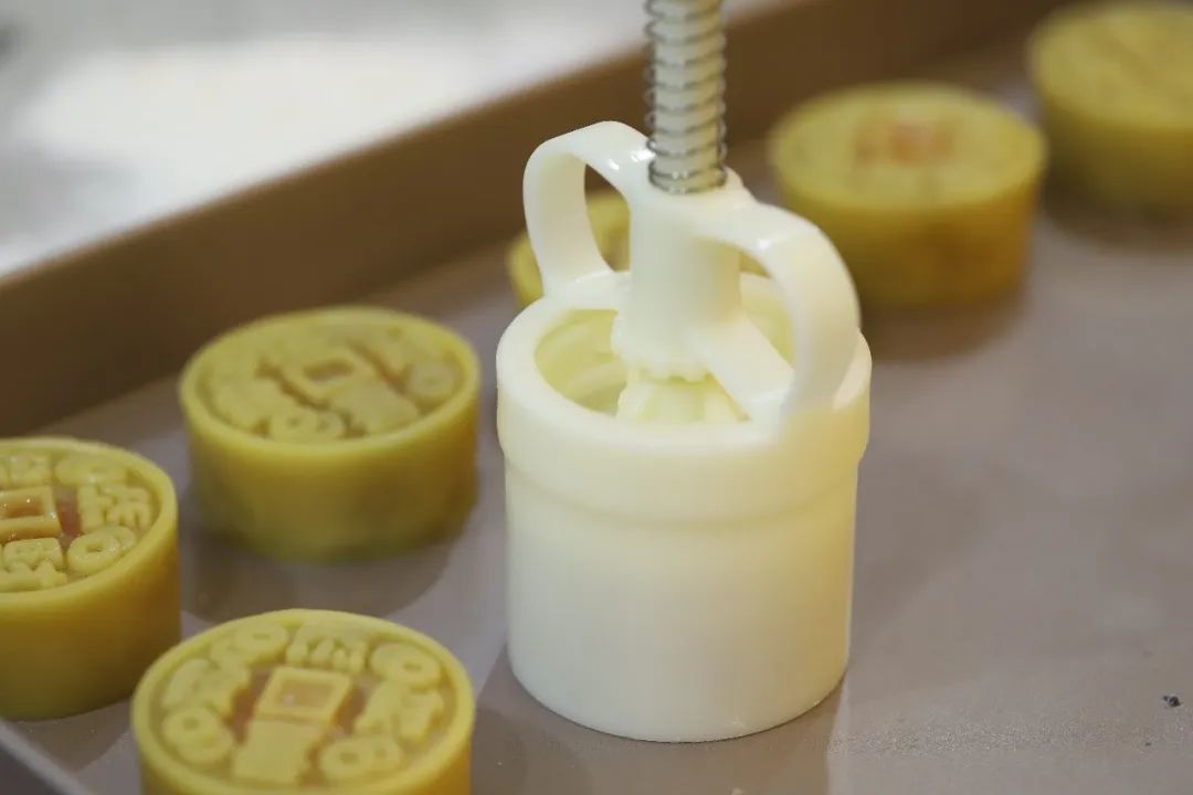 几秒后倒扣推出月饼,力度要均匀。