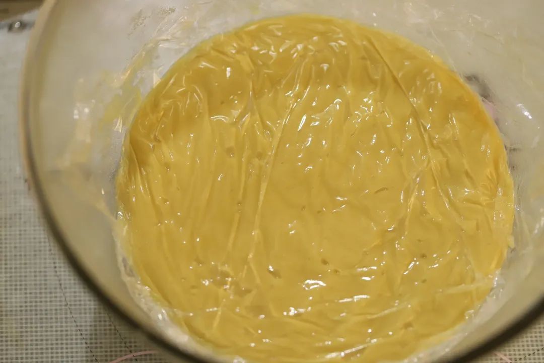保鲜膜贴面盖好,静置三小时以上。