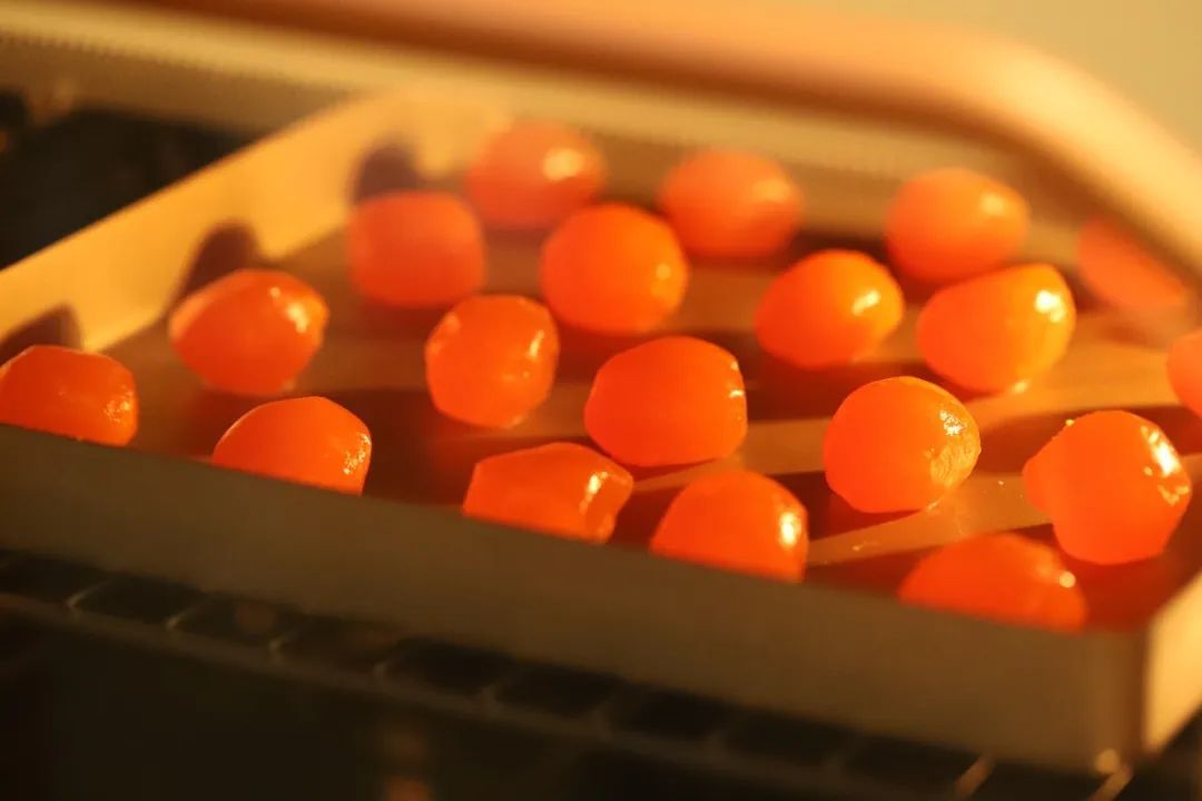 烤箱预热180度放入蛋黄,烤3-5分钟。
