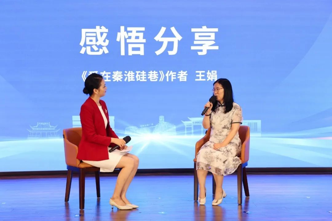 分布文化创始人蒋钢、作者王娟共同为新书揭幕,秦淮区委常委、宣传部部长王赵海与秦淮区政府党组成员、二级巡视员张仲金共同见证。会上,作者分享了作品的创作初衷及收获感悟。