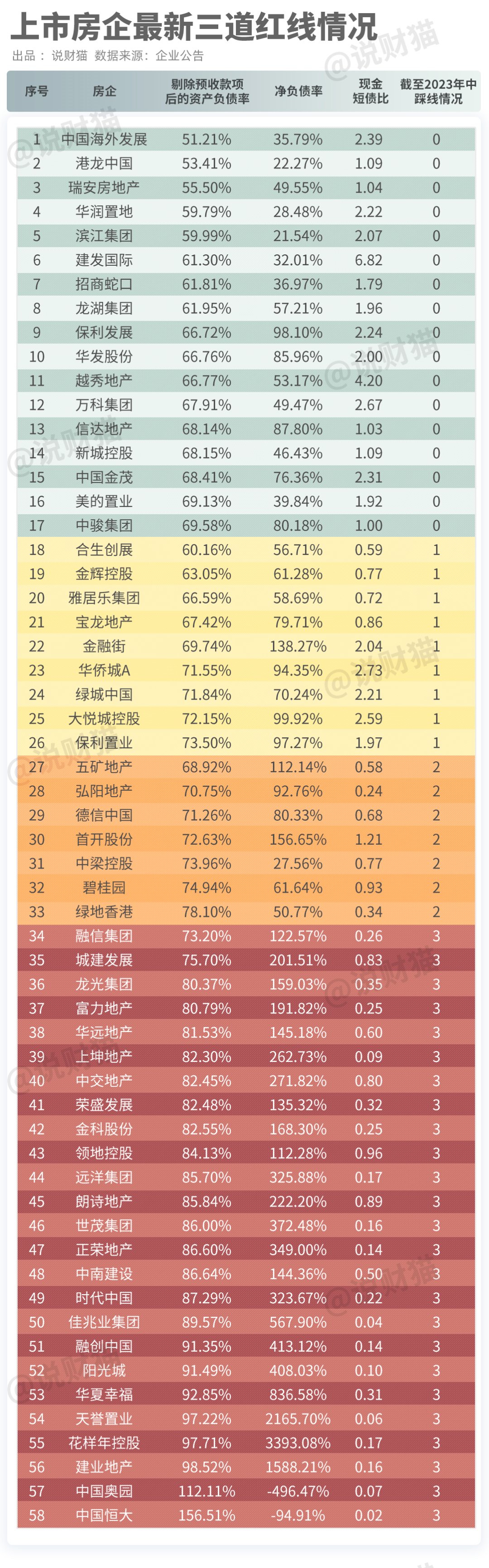 上市房企最新三道红线曝光!不少国字头背景的房企,开始脚踩三条红线——城建发展、华远地产、中交地产、远洋集团(国企大股东)、华夏幸福、建业地产(国企大股东)等