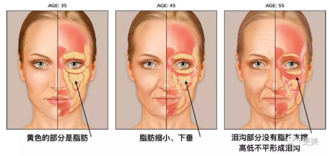 当然,衰老常常是并行的,真皮层、脂肪层可能会在筋膜松弛的同时凹陷。